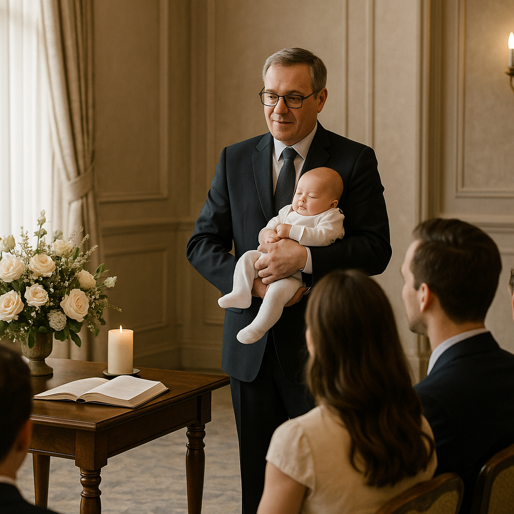 Ofrezco ceremonias civiles completamente personalizadas, con la posibilidad de incluir rituales simbólicos como la Arena o la Vela, y siempre con espacio para que padres, familiares o amigos participen si así lo desean.